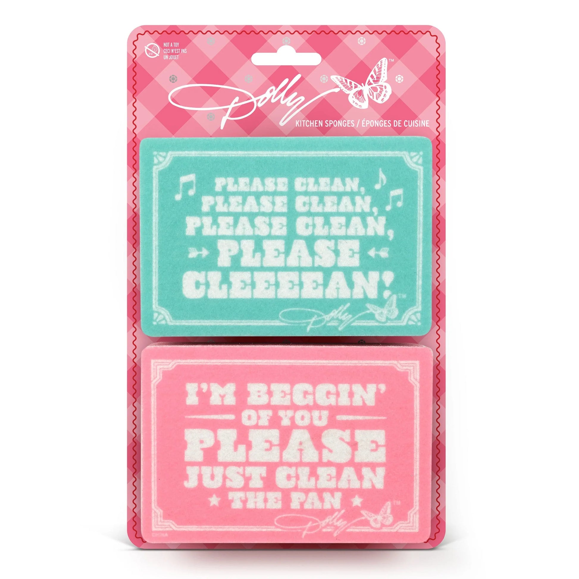 Is your sink begging for a Dolly-style rescue? This playful sponge duo riffs on “Jolene” with parody lyrics so catchy you’ll find yourself singing while you scrub. Each 4.3" x 3" sponge is made with three hardworking layers and adorned with Dolly’s signature logo. Packed on a pink gingham backer with foil-stamped rhinestones, they’re perfect for gifting or everyday use.