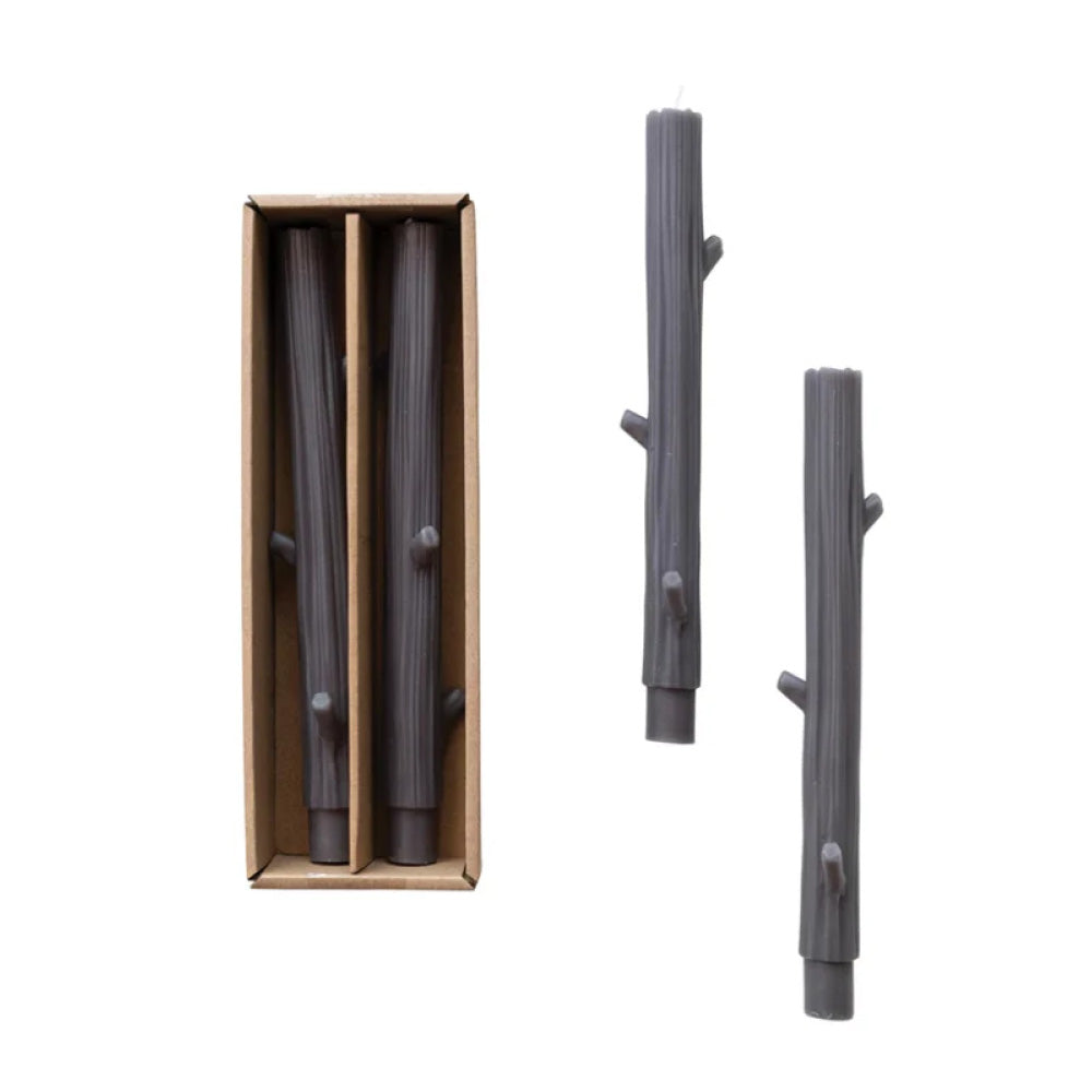Unscented Twig Shaped Taper Candles, Charcoal Color, Set of 2, 10”