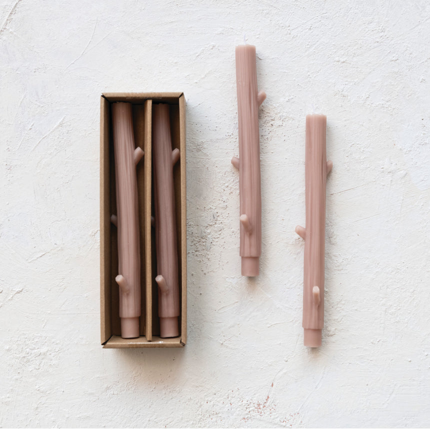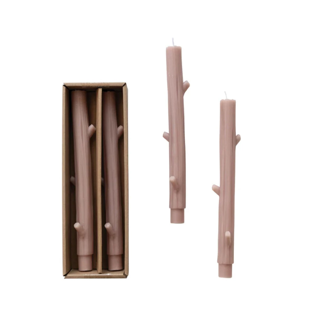 Unscented Twig Shaped Taper Candles, Khaki Color, Set of 2