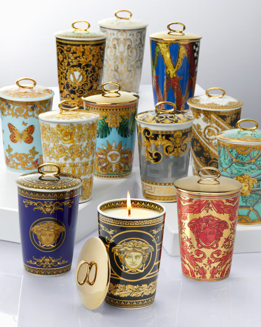 An opulent, garden-themed, lidded candle scented with Versace's floral Le Jardin de Versace fragrance. Made in Germany from the finest porcelain.