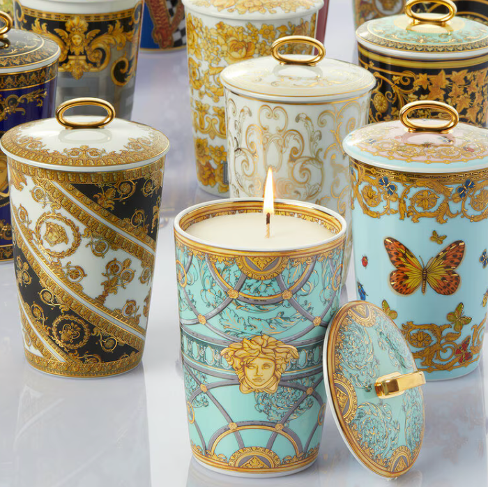 An opulent, lidded candle scented with a Le Scala de Palazzo motif. Featuring Versace's floral Le Jardin de Versace fragrance. Made in Germany from the finest porcelain.